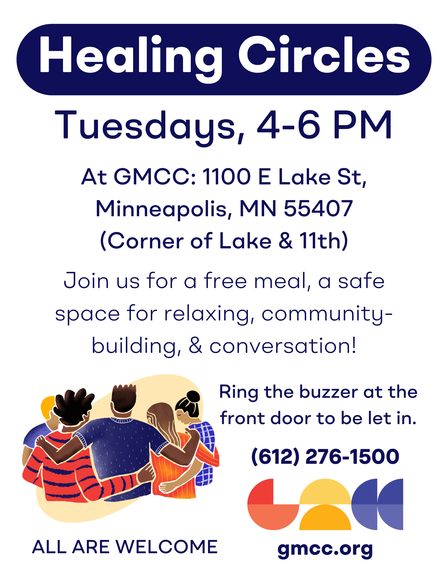 Healing Circles were an essential part of GMCC’s pilot Drop-in Services program from 2022. In partnership with Conflict Resolution Center and restorative justice activist Raj Sethuraju, GMCC would host circles for primarily unhoused neighbors to share about their experiences & feelings and build community together.