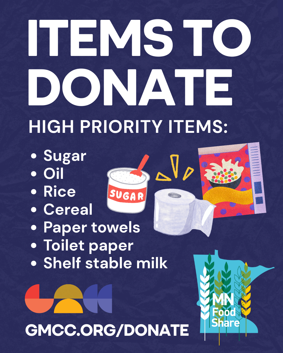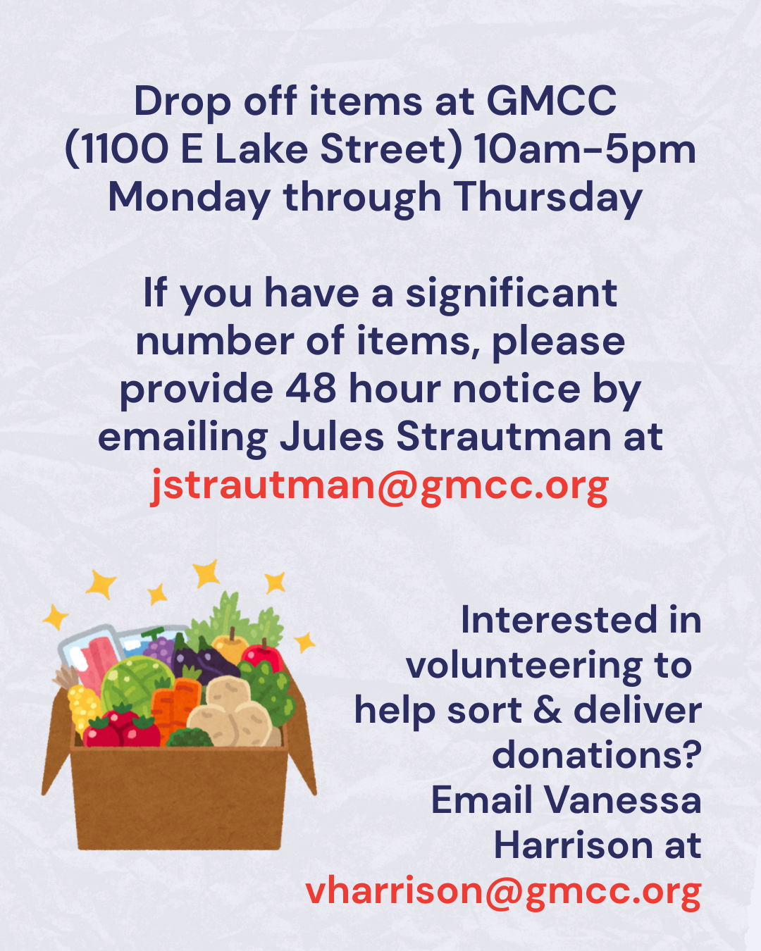 Thankfully, Minnesota has ensured that residents received their November SNAP benefits. However, need is high and threats of SNAP being cut are still looming. GMCC will still be accepting food donations.